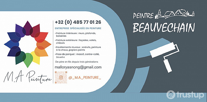 Je suis peintre décorateur et peintre en bâtiment, et j’exerce ce métier avec passion depuis plus de 18 ans. Issu d’une famille où la peinture se transmet depuis trois générations, j’ai grandi au contact du chantier, des couleurs, des finitions et du travail bien pensé. Aujourd’hui, je travaille en équipe, en partie en famille, pour proposer des travaux de peinture intérieure et extérieure adaptés aux habitations de Beauchevain et jusque Wavre et Namur.