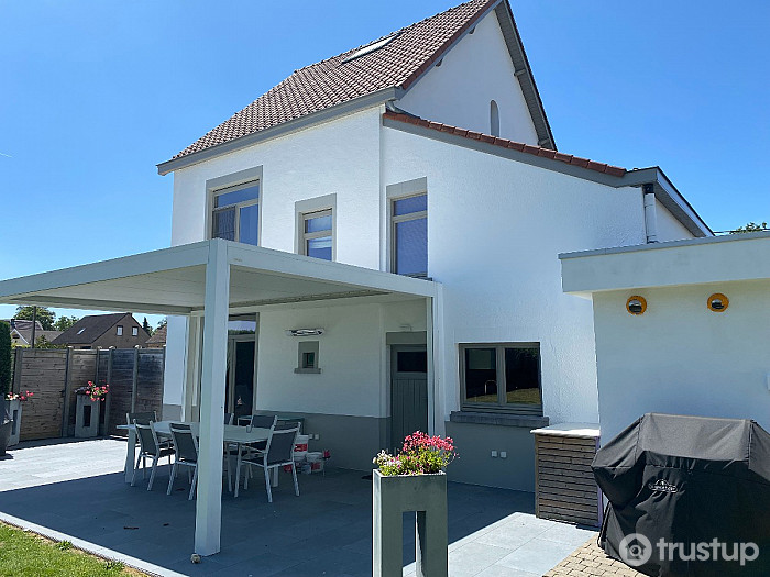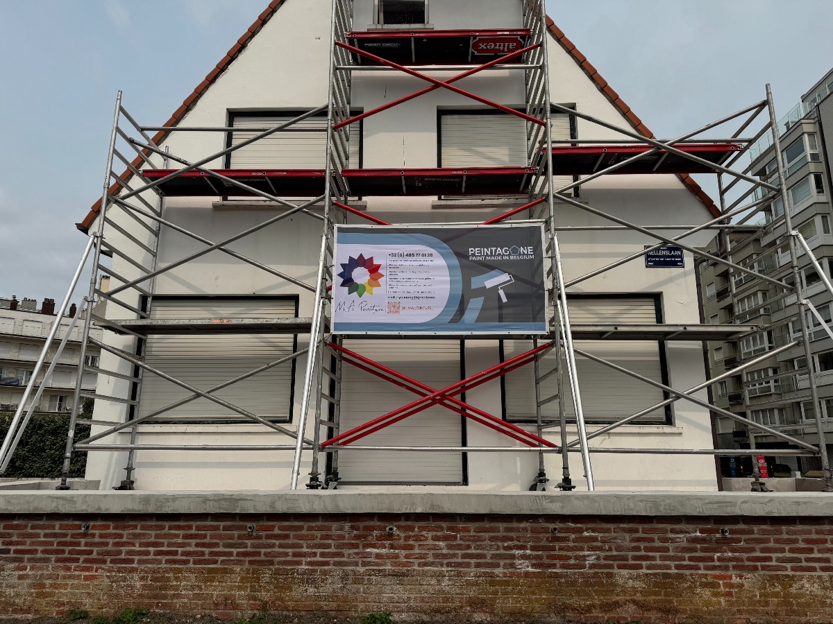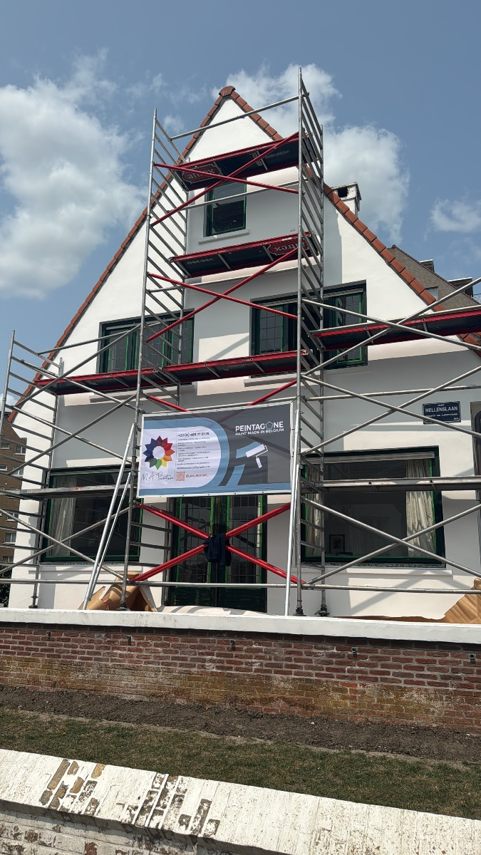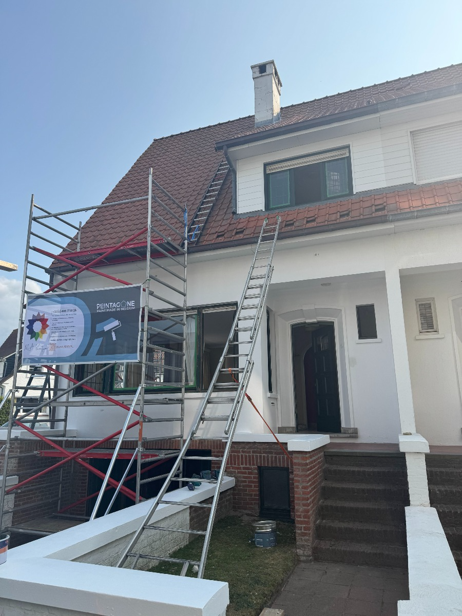 Pour l’extérieur, j’interviens sur les façades, murets, châssis et autres éléments exposés. La peinture façade permet non seulement d’améliorer l’aspect visuel, mais aussi de protéger durablement les supports contre les agressions climatiques.